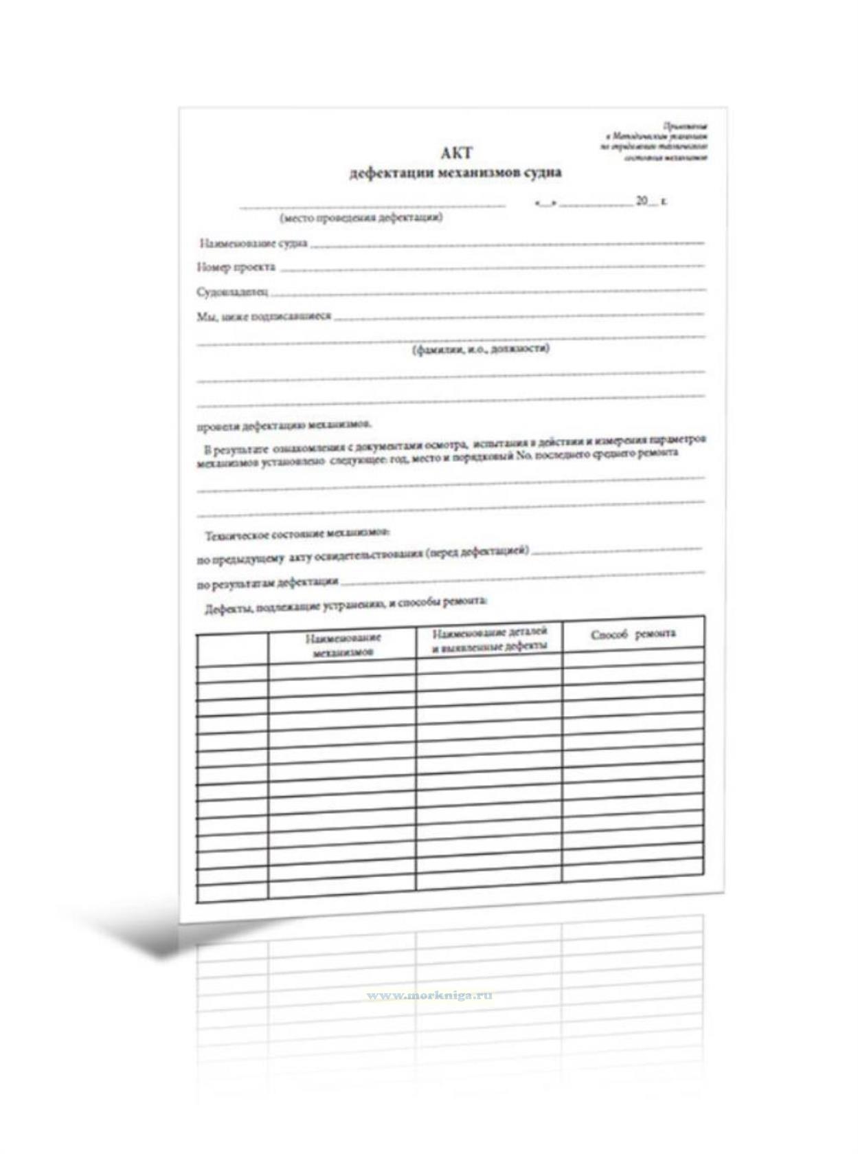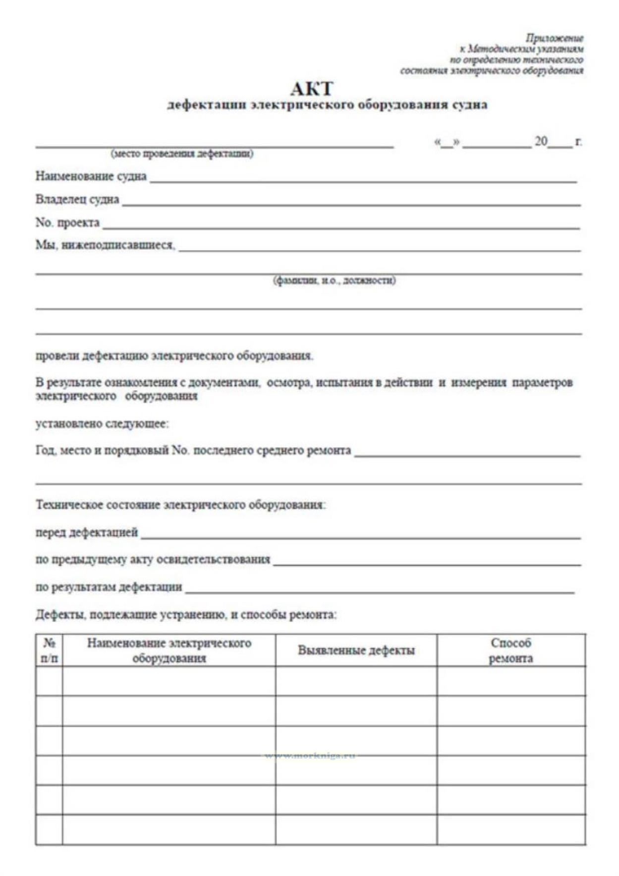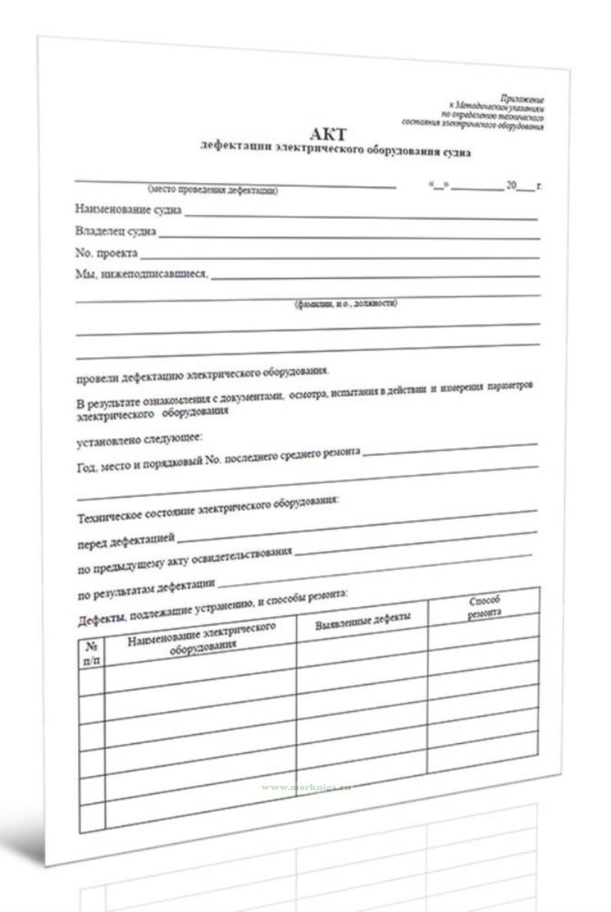 Форма Акта дефектации электрического оборудования судна приведена в Методических указаниях по определению технического состояния электрического оборудования, утв. Распоряжением Минтранса РФ от 29.11.2002 N НС-148-р., которое утратило силу.