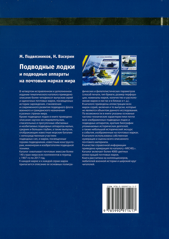 В четвертом исправленном и дополненном издании тематического каталога приведено описание более четырехсот выпусков серий и одиночных почтовых марок, посвященных истории зарождения, становления и современного развития подводного флота военного и гражданского назначения в разных странах мира.