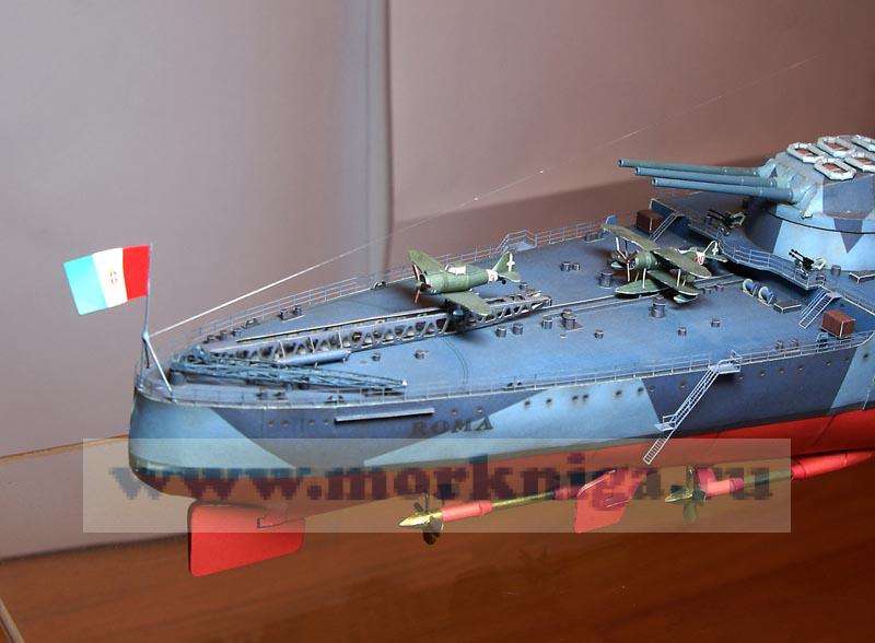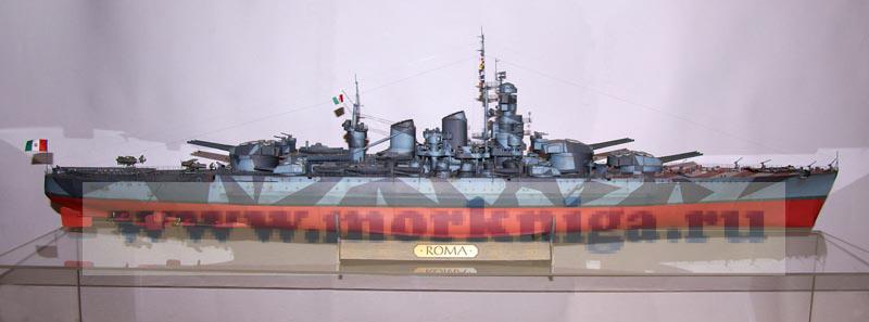 "ROMA" - последний итальянский линкор, вместе со своим кораблем-близнецом "Impero" должен был символизировать возвращение Римской империи в Средиземное море. Известен же он как красивый корабль, затопленный в своем первом боевом походе, целью которого была капитуляция своими вчерашними союзниками.