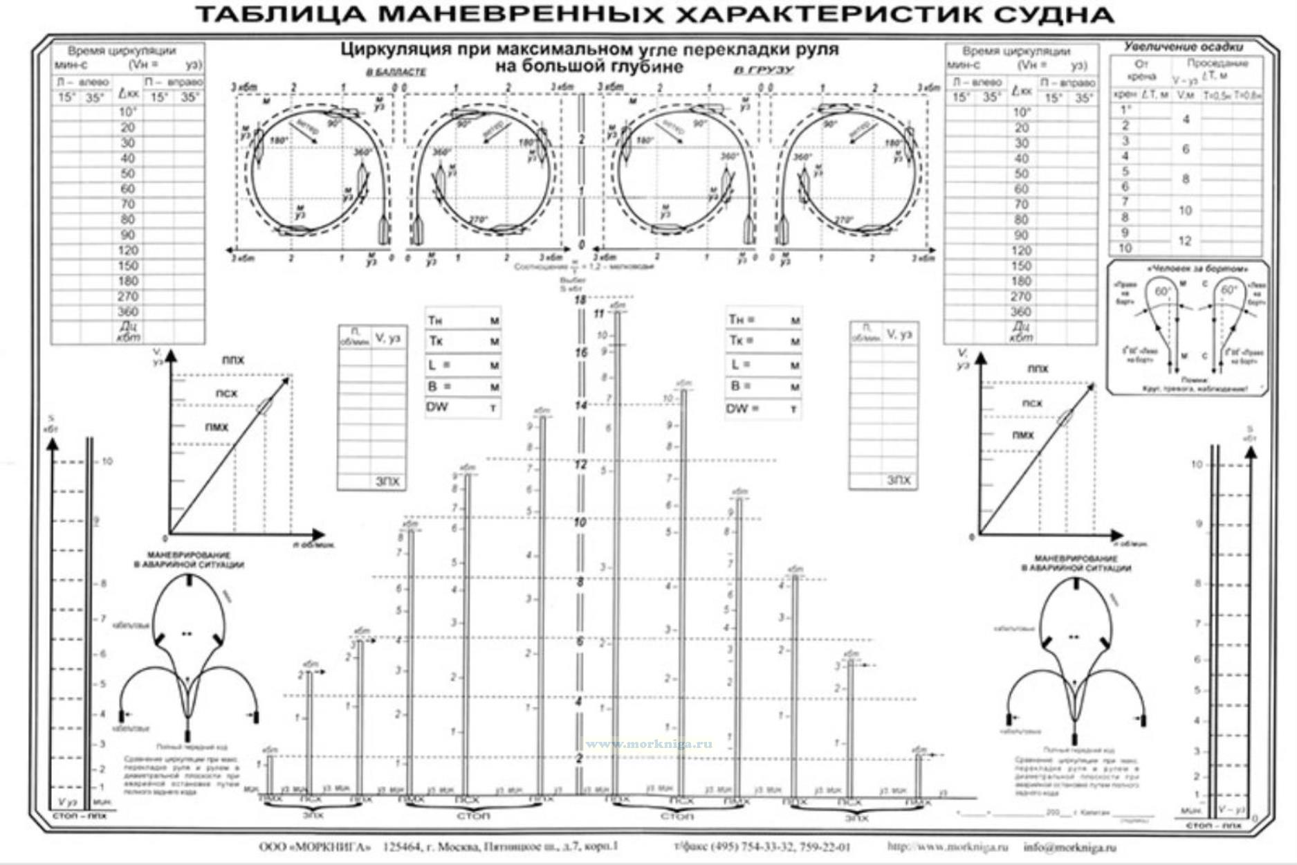 Маневренные характеристики судна могут отличаться от приведенных в таблице в зависимости от внешних условий, состояния корпуса и загрузки судна.