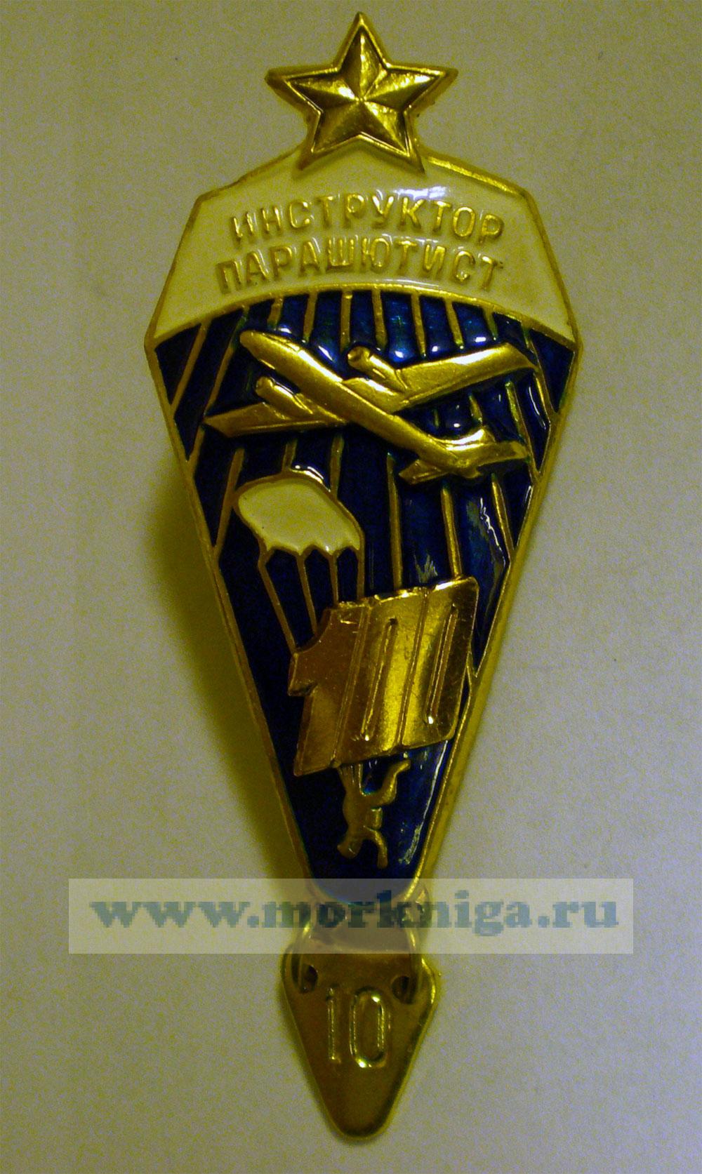 На знаке изображен самолет, парашутист, надпись "ИНСТРУКТОР-ПАРАШЮТИСТ"