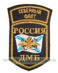 Нашивка вышитая нарукавная "Северный флот. Россия. ДМБ" (металлическая нашивка) тканевая основа