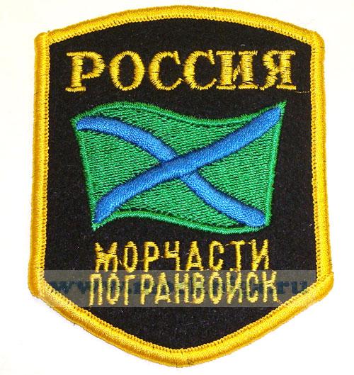 Нашивка вышитая нарукавная "Морчасти погранвойск. Россия" (без орла, шелковая нить) тканевая основа