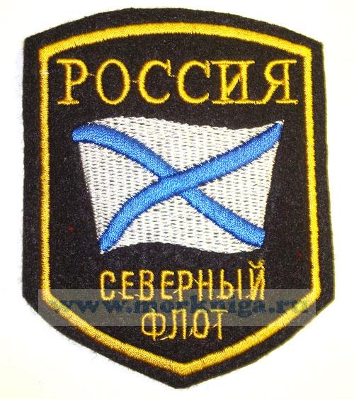 Нашивка вышитая нарукавная "Россия. Северный флот" (шелковая нашивка) тканевая основа