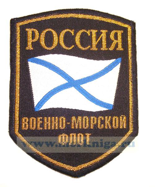 Нашивка на тканной основе с надписью "Россия. Военно-морской флот".