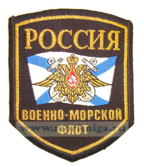 Нашивка на тканной основе с надписью "Россия. Военно-морской флот".