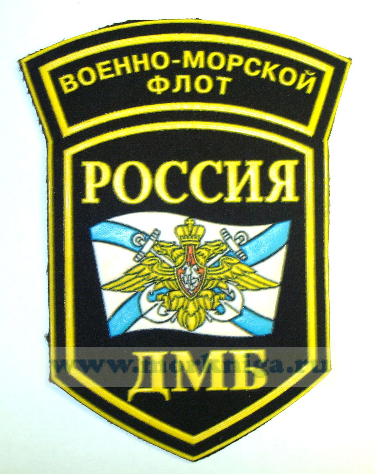 Нашивка нарукавная "Военно-морской флот. Россия. ДМБ" (пластик на тканной основе, 3-х цветная)