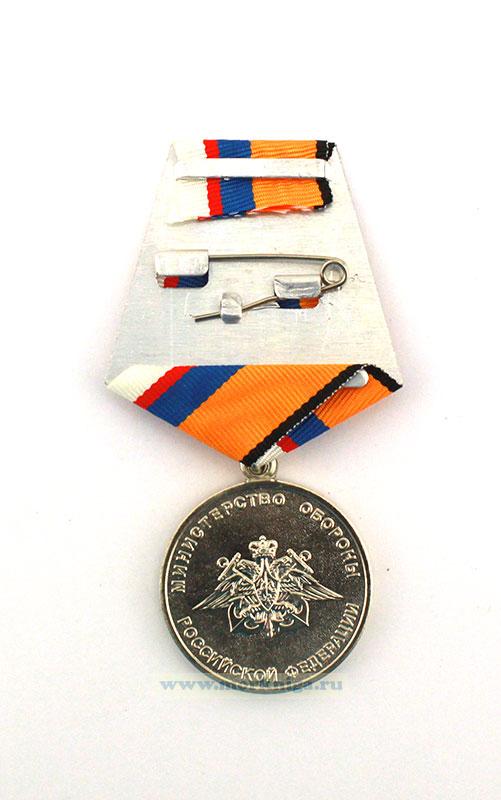 Медаль при помощи ушка и кольца соединяется с пятиугольной колодкой, обтянутой шёлковой лентой шириной 24 мм