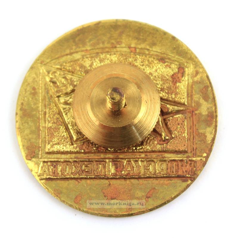 На круглом знаке изображен белый медведь, символизирующий деятельность пехоты на севере, на фоне красного околыша берета морской пехоты, надпись "Морская пехота".