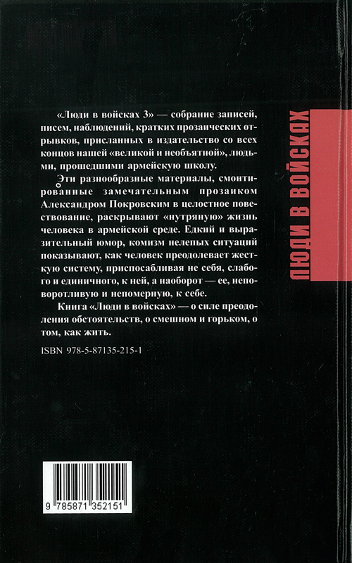 «Люди в войсках 3» - собрание записей, писем, наблюдений, кратких прозаических отрывков, присланных в издательство со всех концов нашей «великой и необъятной», людьми, прошедшими армейскую школу.