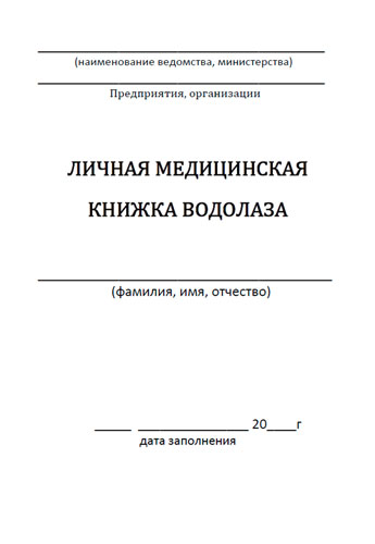 Личная медицинская книжка водолаза является документом, отображающим состояние здоровья водолаза на всем протяжении его водолазной службы. Ее выдает учебное заведение после окончания водолазом первоначальной водолазной подготовки и присвоения ему водолазной квалификации.