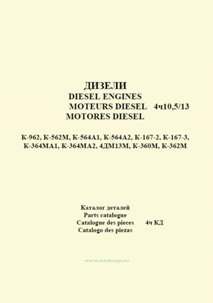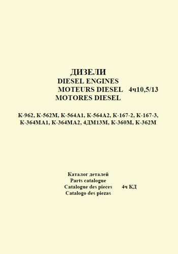 The Catalogue covers the assemblies and parts of 4ч 10,5/13 diesel-engines which can be procured as replacement parts.