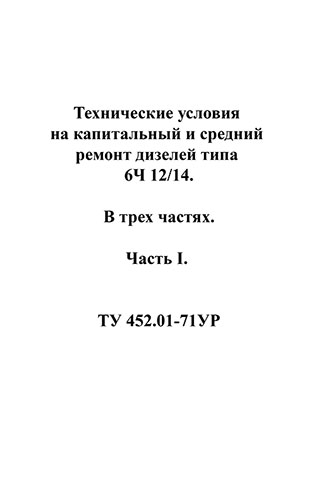 Технические условия на капитальный и средний ремонт дизелей типа 6Ч 12/14. В трех частях. Часть II. ТУ 452.01-71УР1