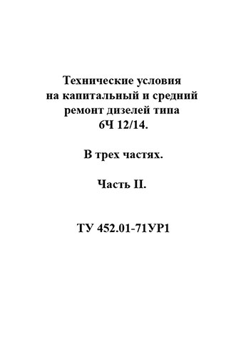 Технические условия на капитальный и средний ремонт дизелей типа 6Ч 12/14. В трех частях. Часть I. ТУ 452.01-71УР