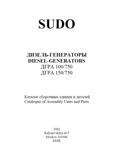 The present catalogue is intended for placing orders for spare parts which may be required in the maintenance"and repair of diesel-generators ДГРА 100/750 and ДГРА 150/750.