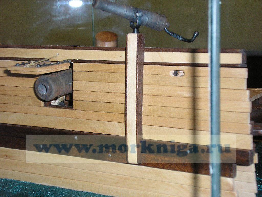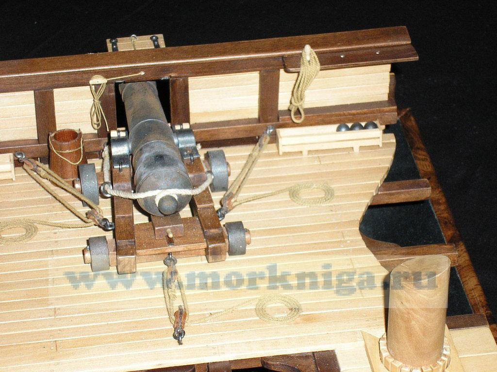 Масштаб - 1:15. Пушка является точной копией настоящего орудия и стреляет ядрами, фальконет тоже стреляет.