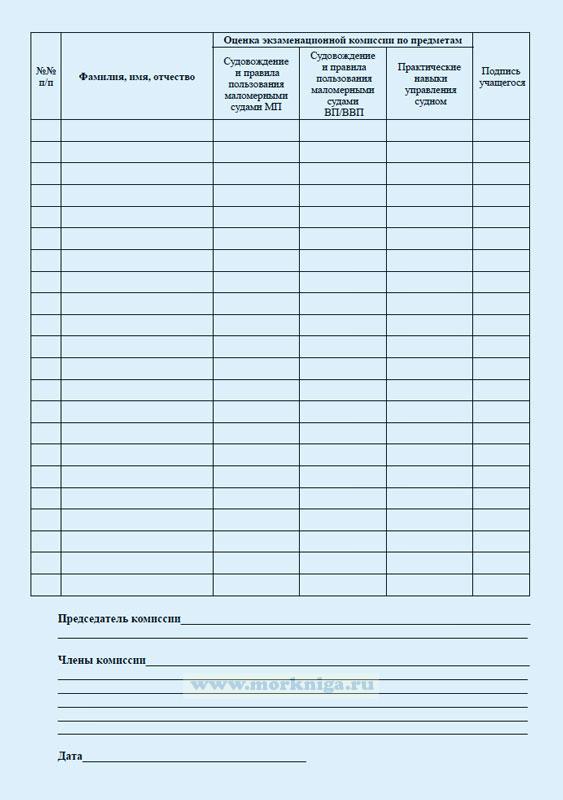 Оценка экзаменационной комиссии по итогам сдачи экзамена на право управления маломерным судном заносится в экзаменационную ведомость.