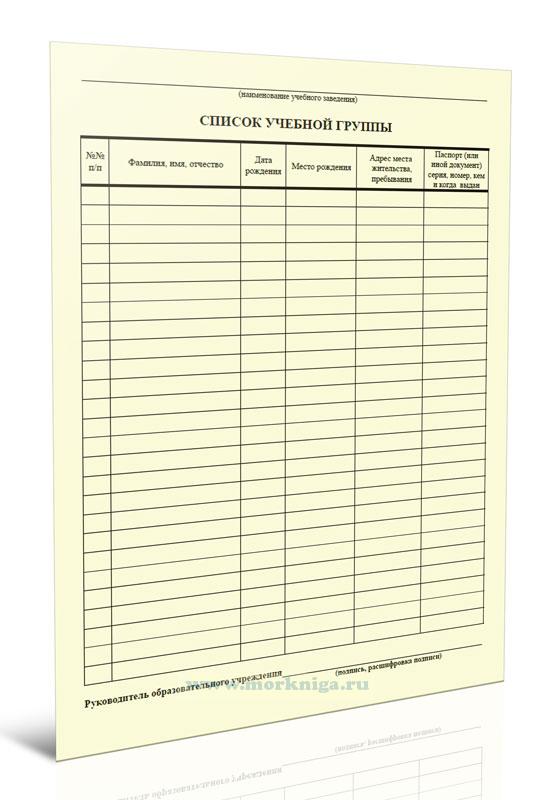 Список учебной группы (для курсов по обучению судоводителей маломерных судов) входит в состав Комплекта документации по обучению судоводителей маломерных судов.
