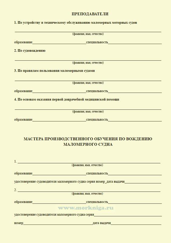 3. Заявление о приеме на обучение в группу подготовки судоводителей маломерных судов - 10 шт.