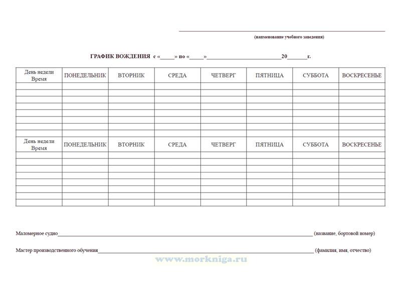 График вождения (для курсов по обучению судоводителей маломерных судов) входит в состав Комплекта документации по обучению судоводителей маломерных судов.