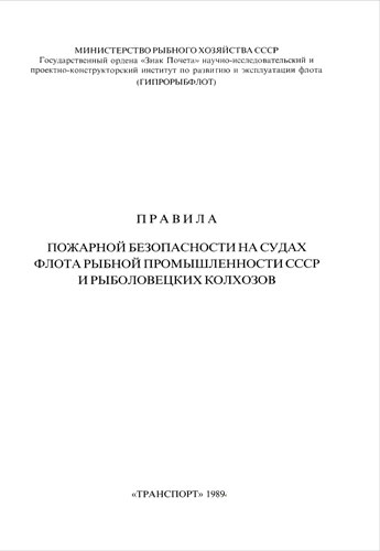 Правила пожарной безопасности на судах флота рыбной промышленности СССР и рыболовецких колхозов входят в Перечень документов, которые должны находиться на борту судов рыбной промышленности РФ.