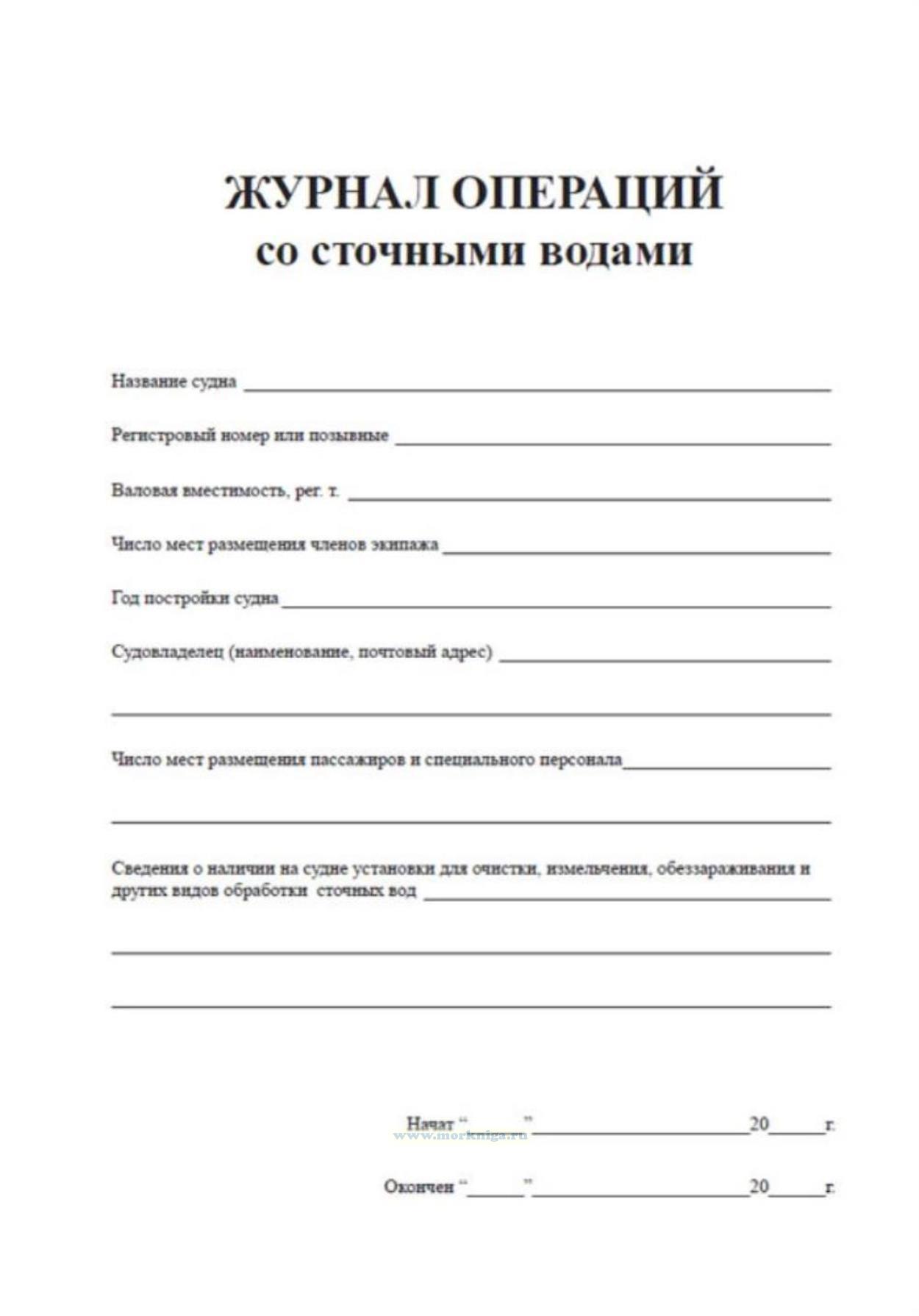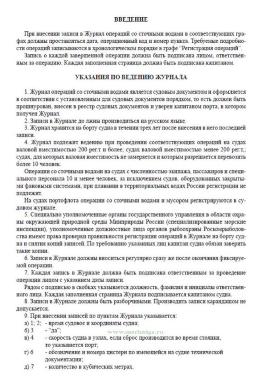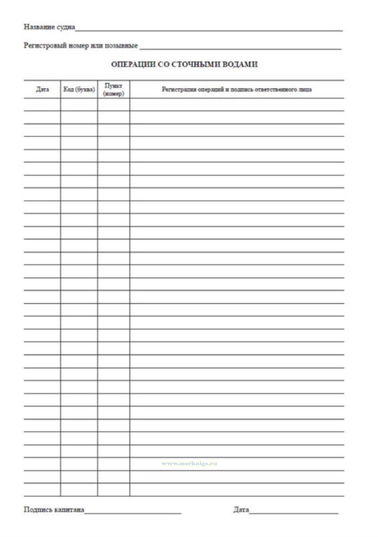 Форма журнала соответствует Приложению Д к "Правилам регистрации операций с нефтью, нефтепродуктами и другими веществами, вредными для здоровья людей или для живых ресурсов моря, и их смесями, производимыми на судах и других плавучих средствах. РД 31.04.17-97"