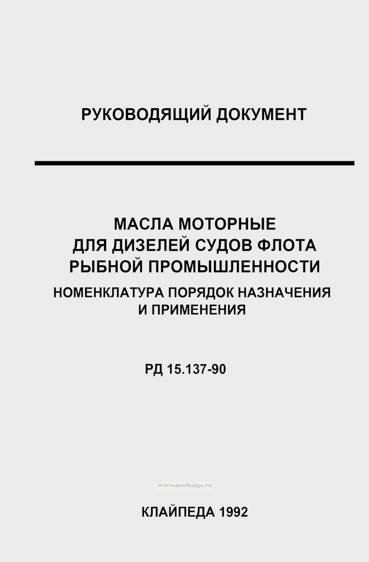 Настоящий руководящий документ, распространяется на масла моторные, предназначенные для судовых дизелей, установленных на судах флота рыбной промышленности.
