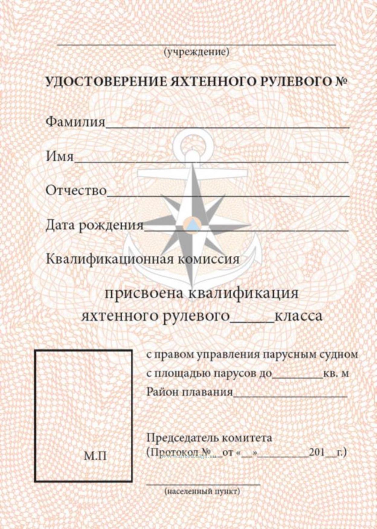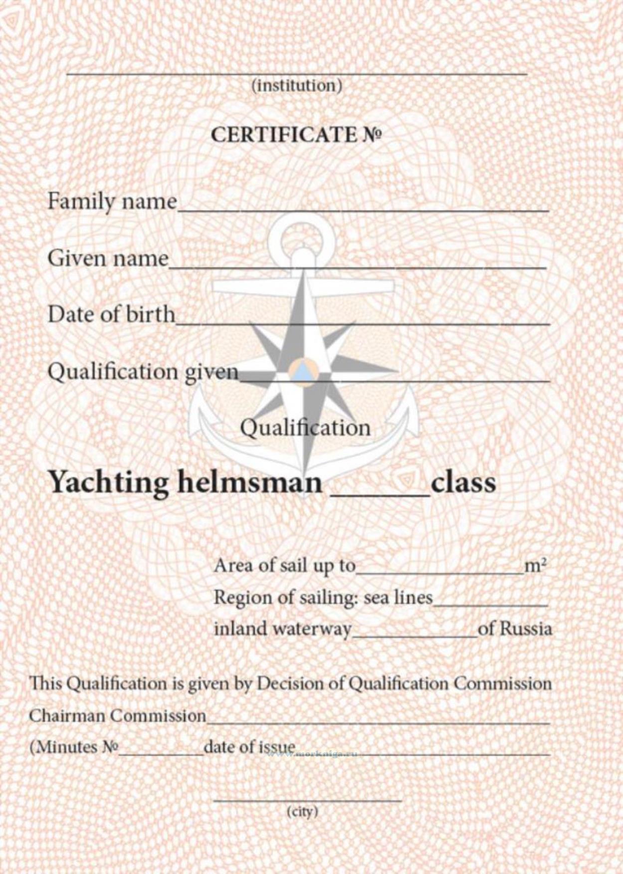 При присвоении квалификации яхтенного рулевого с правом управления парусным судном выдается удостверение на двух языках - русском и английском.