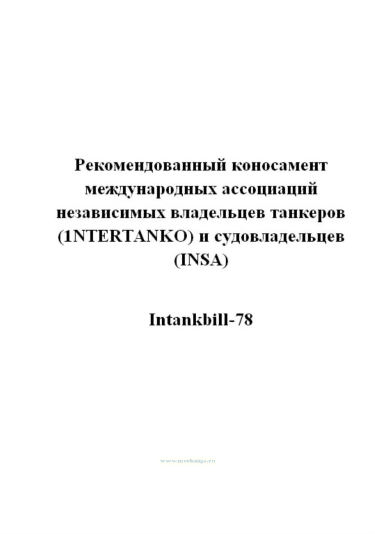 Рекомендованный коносамент международных ассоциаций независимых владельцев танкеров (1NTERTANKO) и судовладельцев (INSA)._Intankbill-78