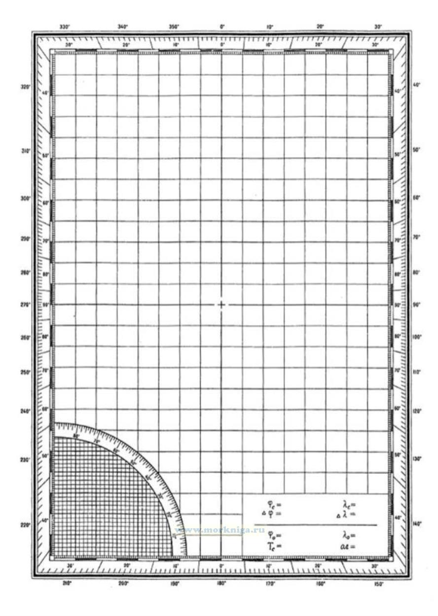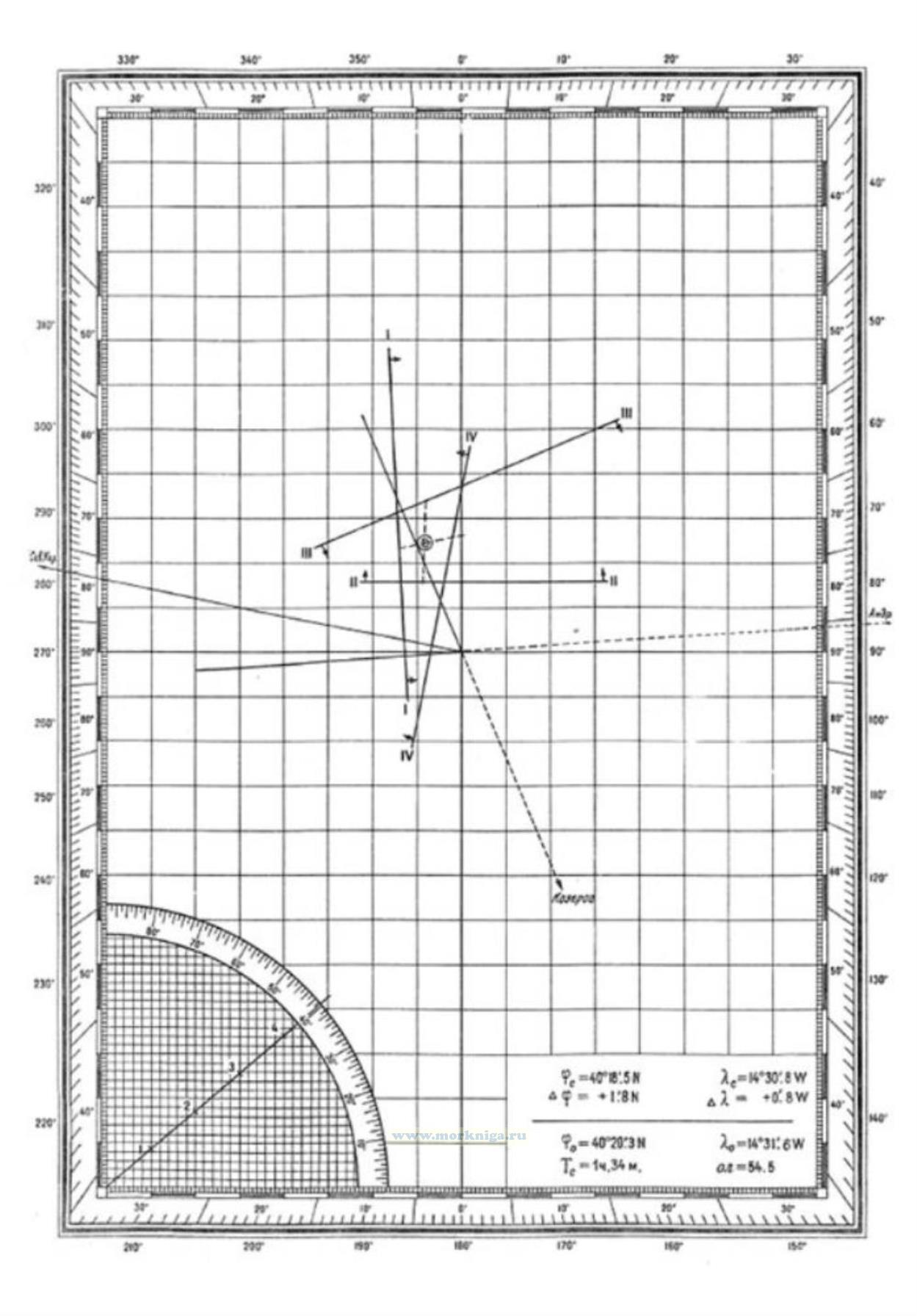 5. Прокладка линии положения для получения места корабля производится на планшете, помещенном на обратной стороне бланка.