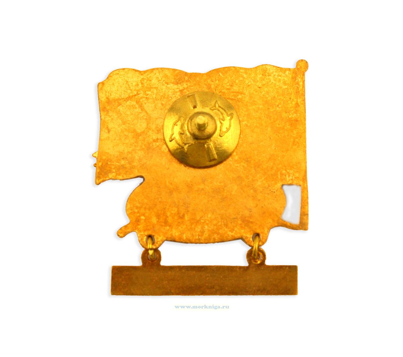Знак выполнен из металла с многоцветной эмалью. Композиция в виде развевающегося флага с якорем в круге, по центру - фигура тигра, внизу - подвесная планка с надписью "Тихоокеанский флот"