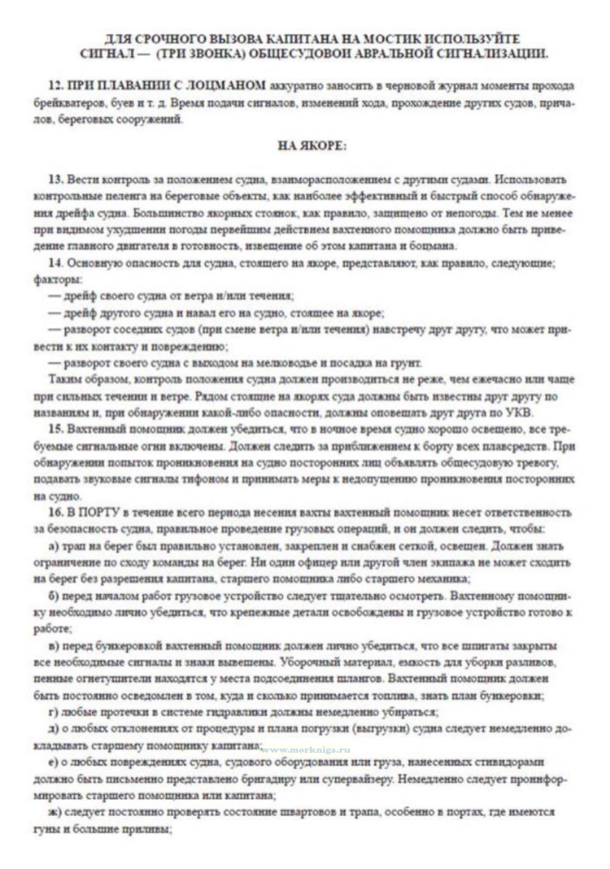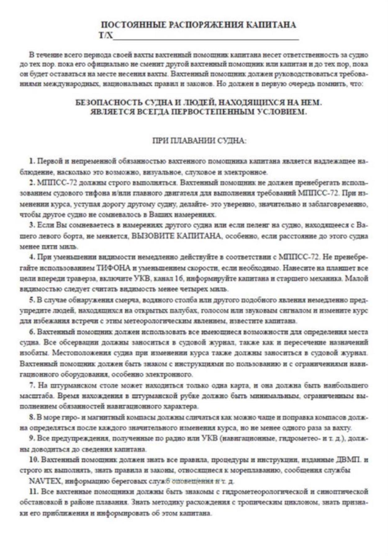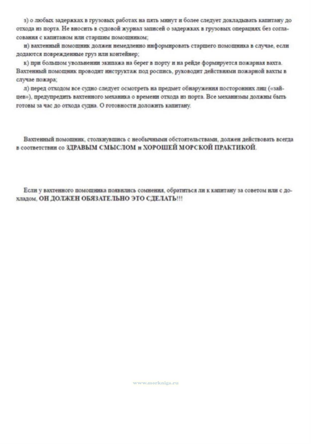 В течение всего периода своей вахты вахтенный помощник капитана несет ответственность за судно до тех пор, пока его официально не сменит другой вахтенный помощник или капитан и до тех пор, пока он будет оставаться на месте несения вахты.