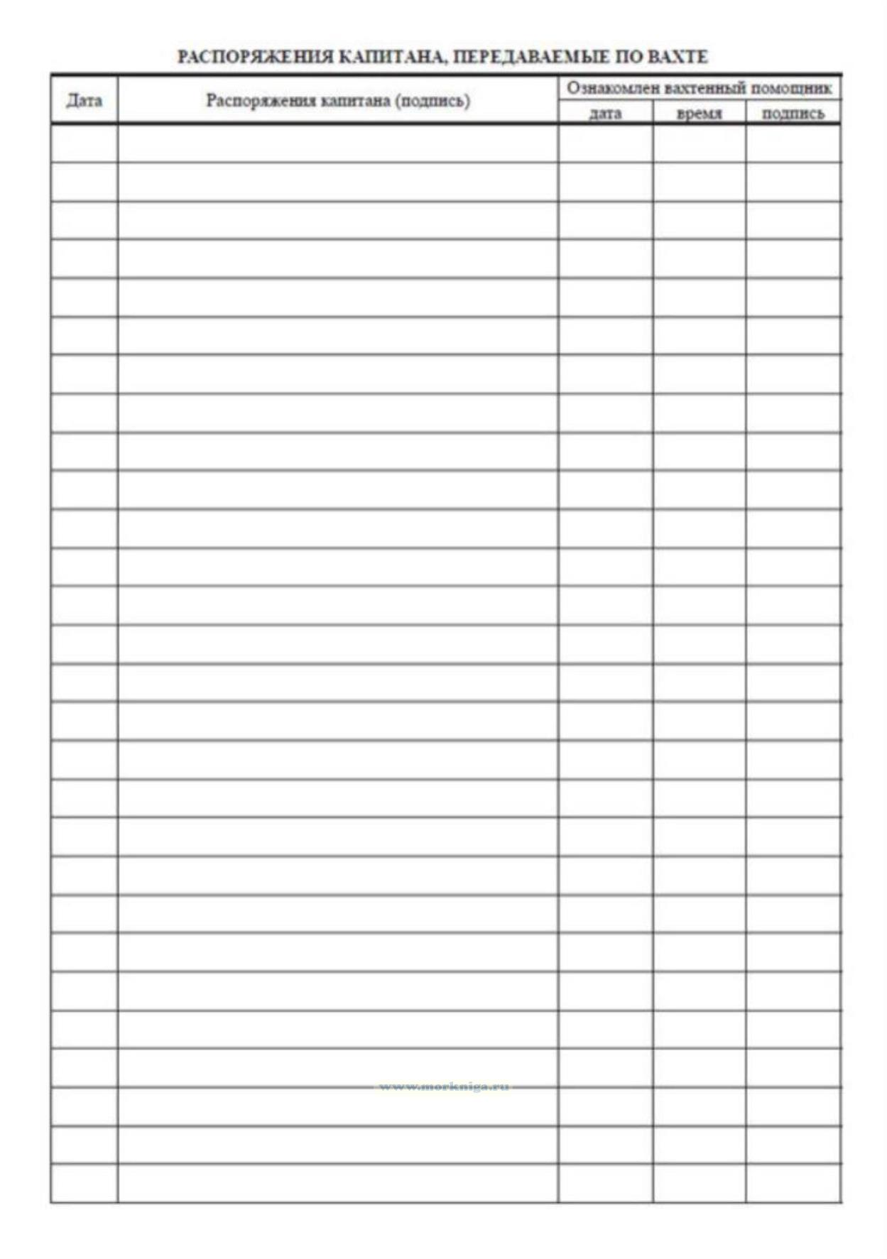 Для записи распоряжений капитана , передаваемые по вахте, используют журнал.