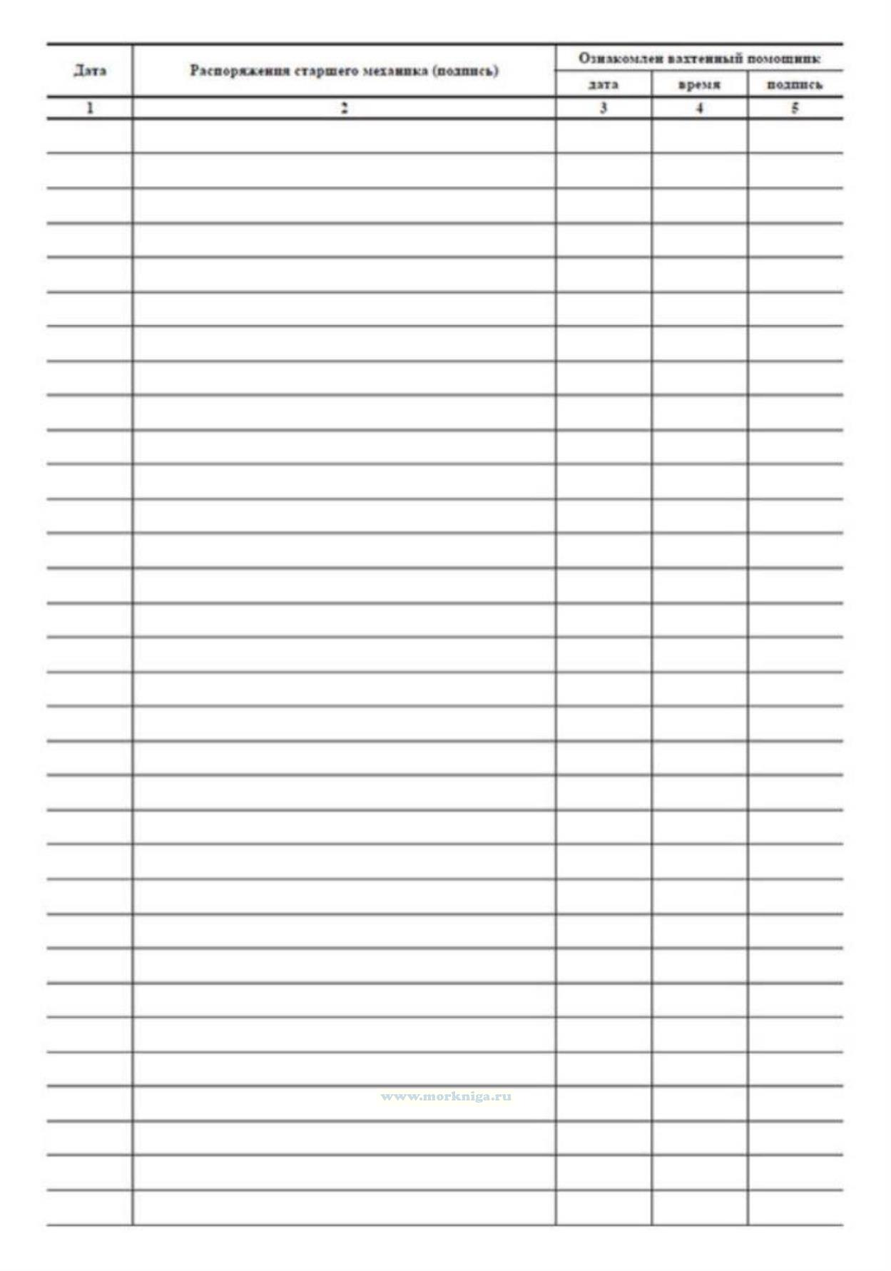 Журнал распоряжений старшего механика имеет графы: