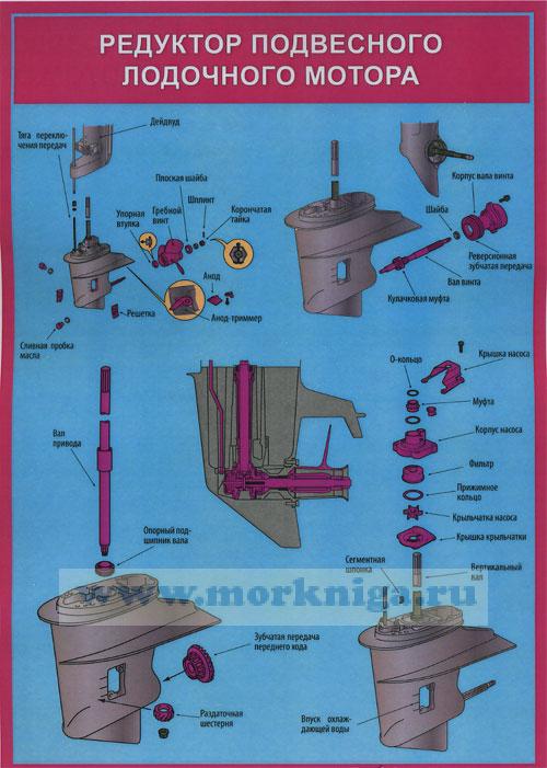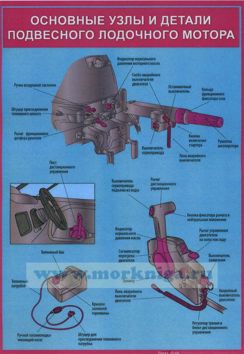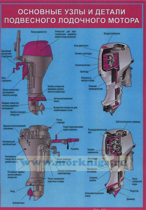 Комплект плакатов "Устройство подвесного лодочного мотора" состоит из: