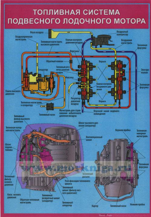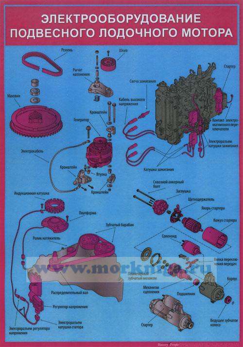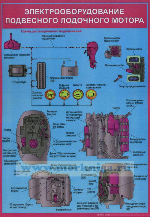 Комплект плакатов "Устройство подвесного лодочного мотора" состоит из:
