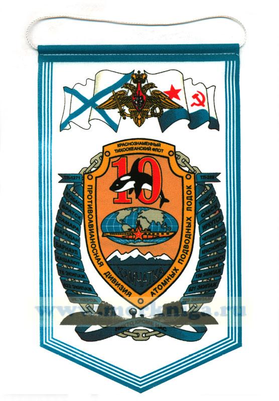 10 противоавианосная дивизия атомных подводных лодок входит в состав подводных сил Тихоокеанского флота России, место постоянной дислокации - п. Рыбачий ( р-н г. Вилючинск - Камчатка). Основными задачами данного соединения являются: