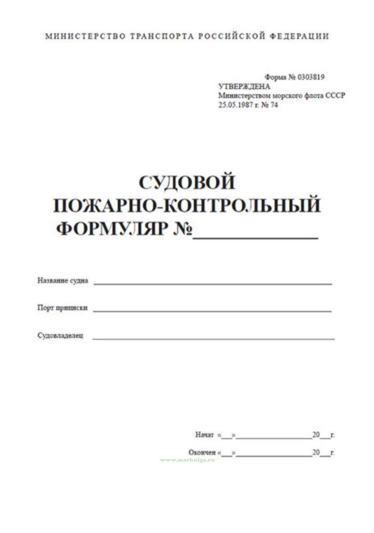 § 2. Судовой пожарно-контрольный формуляр должен вестись на каждом судне Министерства Транспорта РФ в одном экземпляре.