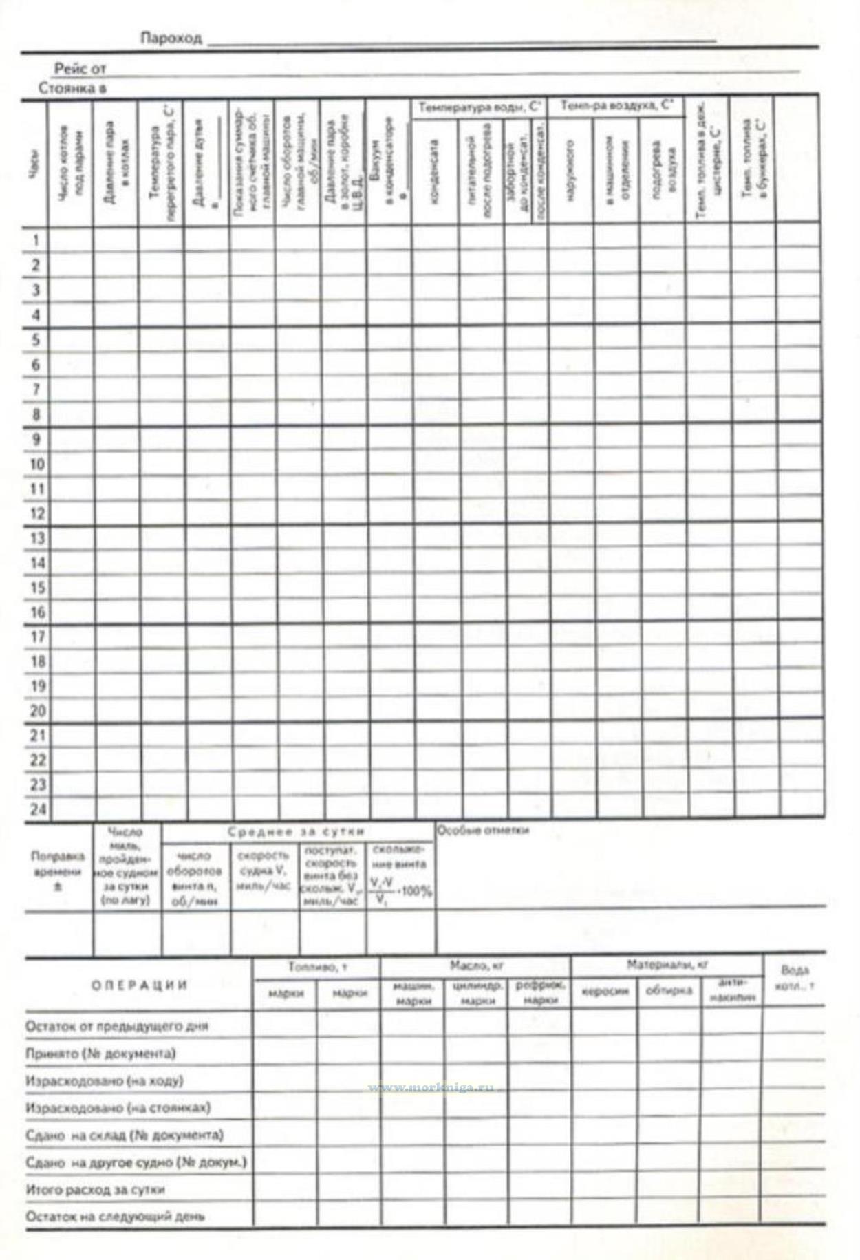 6. Все требуемые сведения (согласно графам должны заполняться старшим механиком тотчас же после окончания суток так, чтобы при всяком требовании журнала последний мог быть предъявлен в вполне законченном виде.