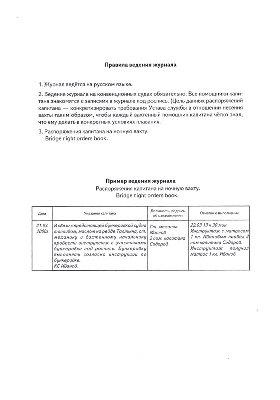 2. Ведение журнала на конвенционных судах обязательно. Все помощники капитана знакомятся с записями в журнале под роспись.