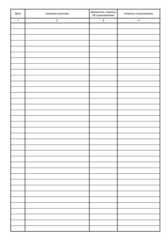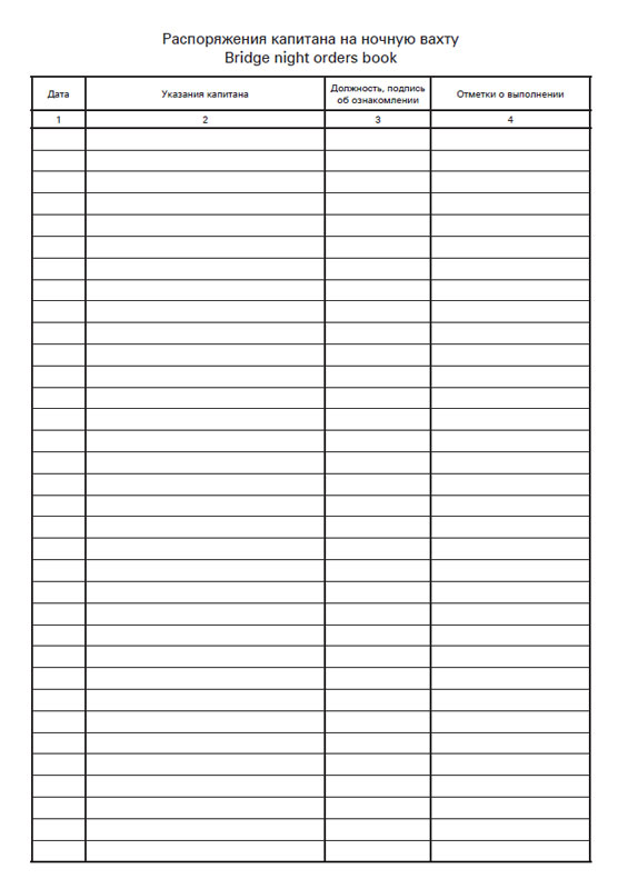 Журнал распоряжений капитана на ночную вахту (Bridge night orders book) содержит графы:
