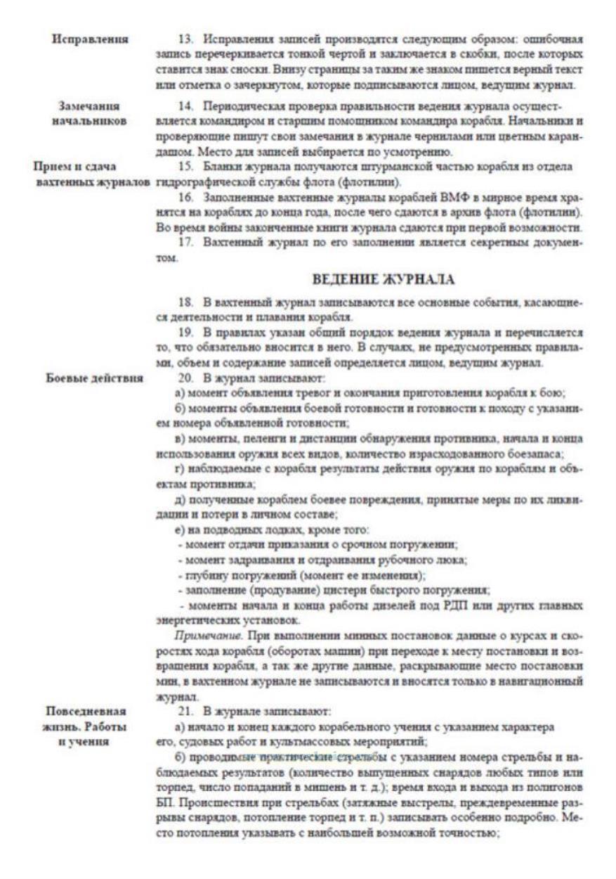 1.Вахтенные журналы ведутся на всех кораблях Военно-Морского Флота.