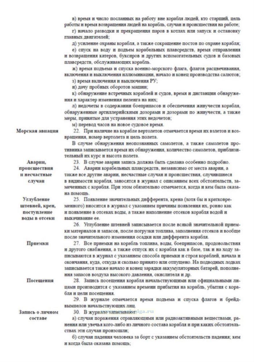 В вахтенный журнал записываются все основные события, касающиеся деятельности и плавания корабля.