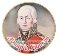 Значок Адмирал Ушаков (металлический, круглый, смола, на пимсе)