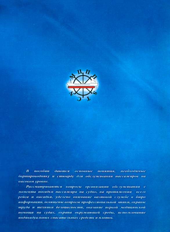 Рассматриваются вопросы организации обслуживания с момента посадки пассажира на судно, в течение всего рейса и высадки, уделено внимание вахтенной службе в бюро информации, освещены вопросы профессиональной этики, охраны груда и техники безопасности, оказание первой медицинской помощи на судах, охраны окружающей среды, использование индивидуальных спасательных средств и плотов.