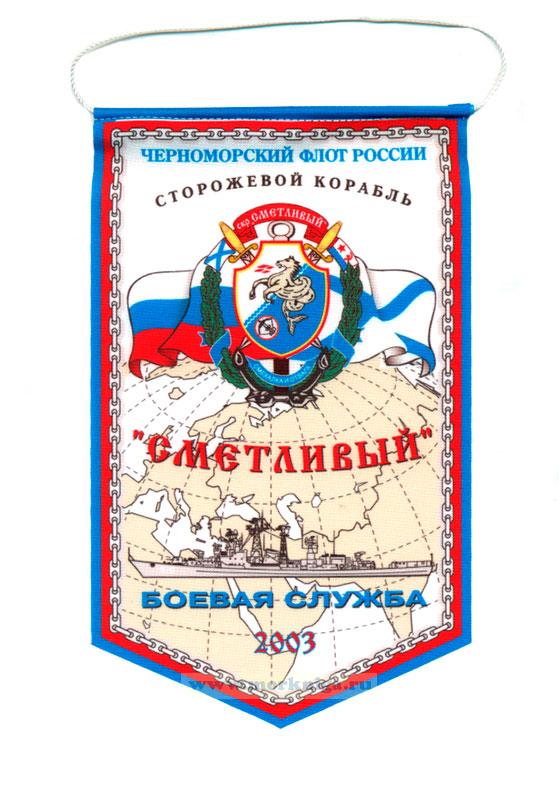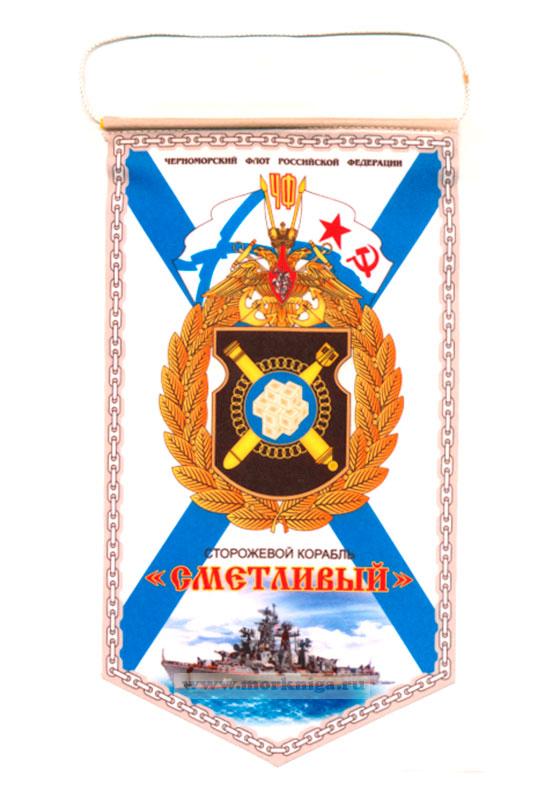 Корабль "Сметливый" - сторожевой корабль модернизированного проекта 01090. Входит в состав 30-й дивизии надводных кораблей Черноморского флота ВМФ России. До 1 июня 1992 года классифицировался как большой противолодочный корабль проекта 61 типа «Комсомолец Украины». За характерный высокий звук газовых турбин корабли этого типа получили на флоте прозвище «поющие фрегаты». Последний «поющий фрегат» и старейший боевой корабль в составе ВМФ России.