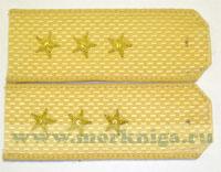 Цена указана за пару.Звезды вышитые,канитель.Размеры погона:Длина 14 смШирина 5 смПогон имеет клапаны для крепления на форменной рубашке (кителе)