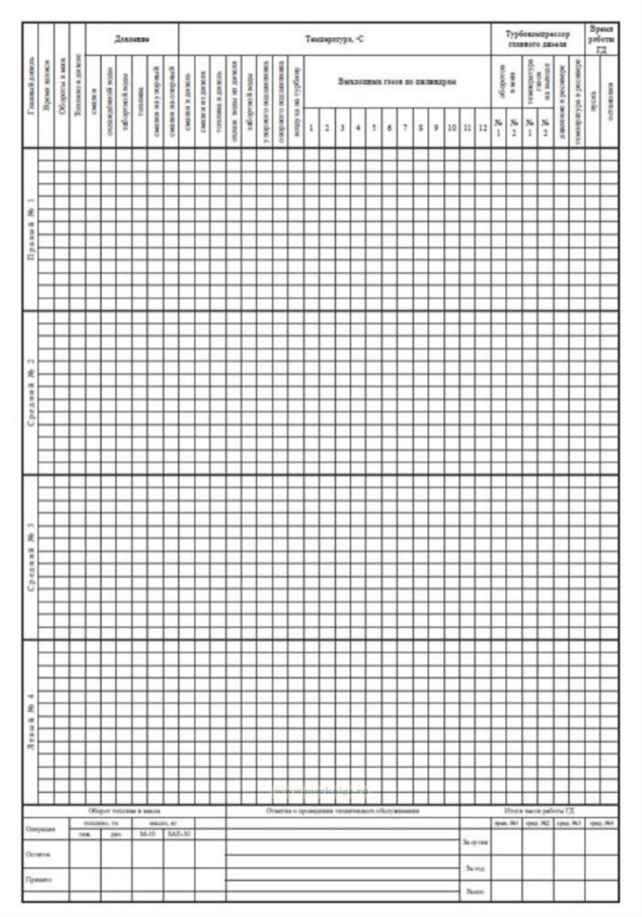1. Машинный журнал является судовым документом, в котором отражается работа судовых дизелей и механизмов за сутки.
