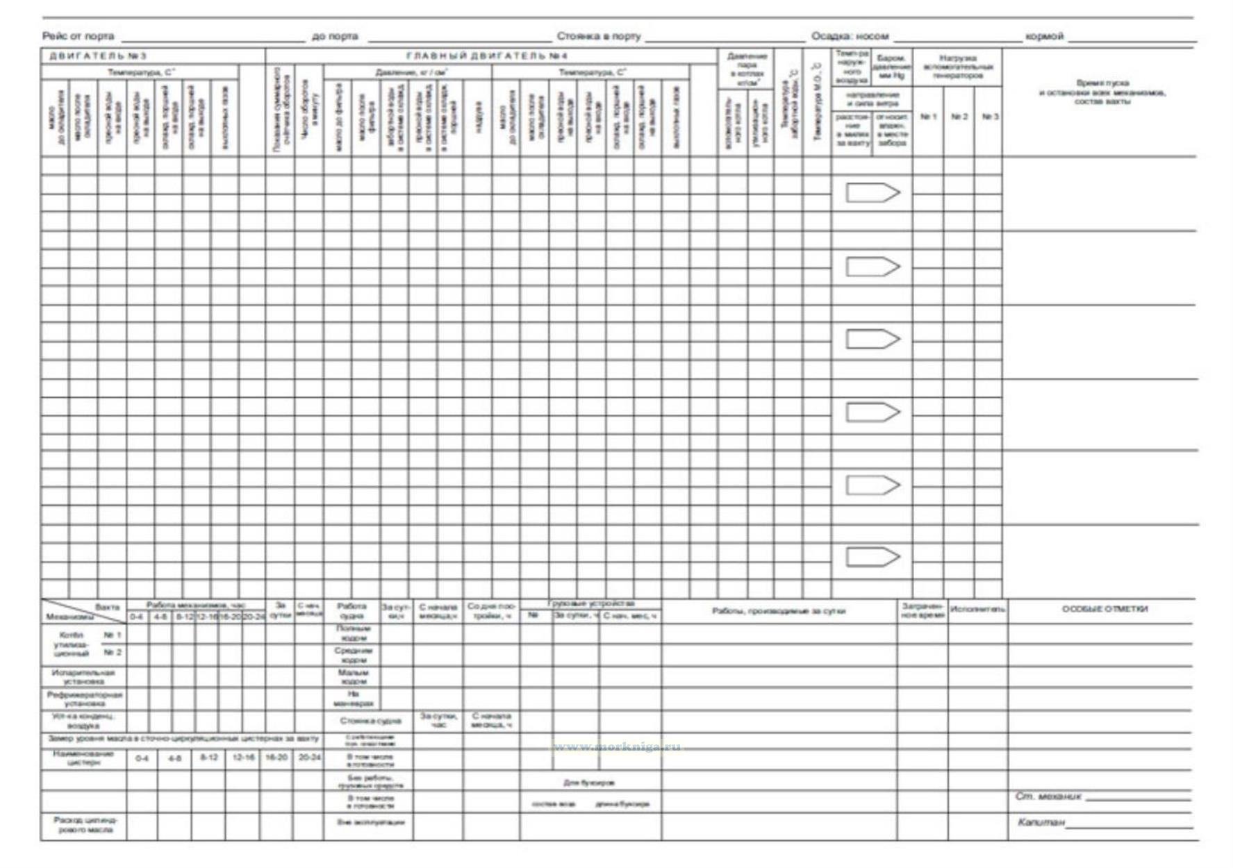3. Повахтснные записи в журнале согласно графам ведутся ежечасно вахтенным механиком, который перед сдачей вахты скрепляет записи своей подписью и несёт ответственность за их правильность и аккуратность.