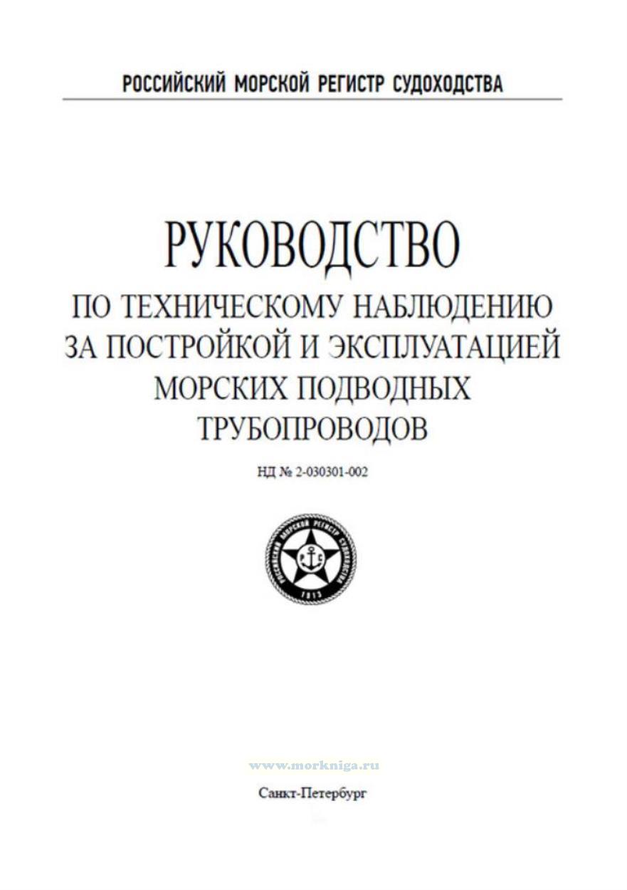 Настоящее издание составлено на основе Руководства по техническому наблюдению за постройкой и эксплуатацией морских подводных трубопроводов 2017 года.